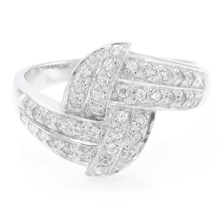 Entdecken Sie die Faszination dieses raffinierten Rings aus 925er Sterlingsilber, der mit insgesamt 40 funkelnden kambodschanischen Zirkonen im Brillantschliff mit einem Gesamtgewicht von 0,641 Karat besetzt ist. Das meisterhafte Design besteht aus ineinander verschlungenen Bändern, die die Illusion von Bewegung vermitteln und dem klassischen Stil eine moderne Wendung geben. Dieser Ring eignet sich perfekt, um Ihrer Geschäftskleidung einen Hauch von Eleganz zu verleihen oder Ihr Ausgehoutfit aufzuwerten. Er ist eine vielseitige Ergänzung Ihrer Schmucksammlung.