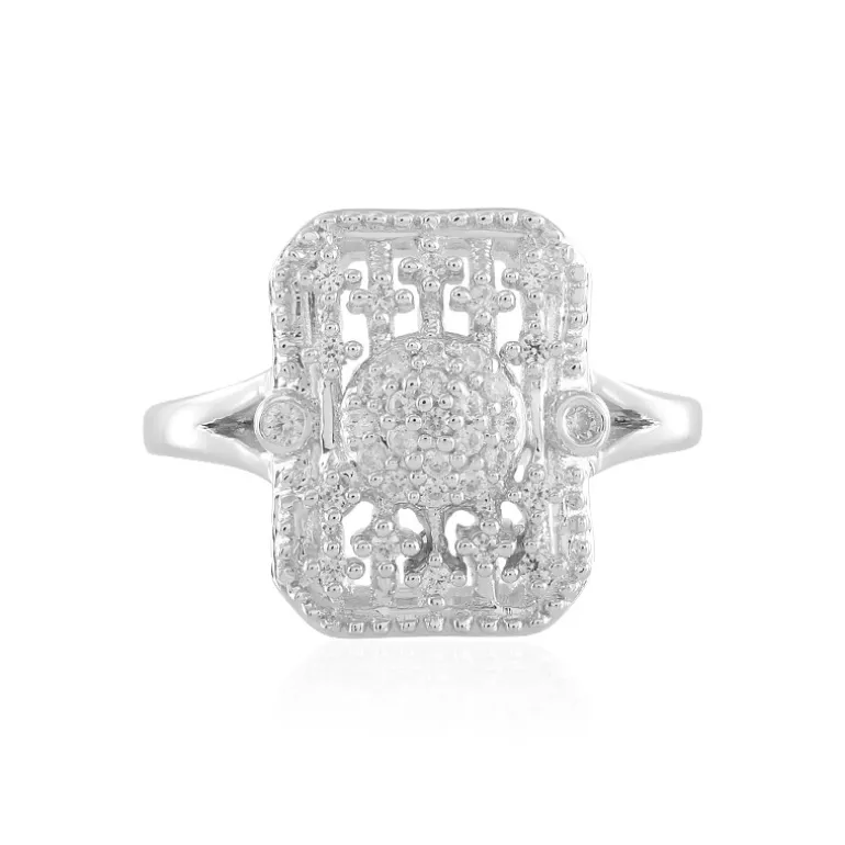 Dieses Meisterwerk aus Sterlingsilber mit einem Gewicht von 3,24 g ist mit 35 schimmernden Zirkonen aus dem Herzen Kambodschas von insgesamt 0,243 ct besetzt. Der Ring hat einen Rundschliff, der mit seinen Abmessungen von 23×19 mm ein bezauberndes Lichtspiel erzeugt. Dieser Ring ist ideal für eine stilvolle Abendveranstaltung oder einen raffinierten Büro-Look und verleiht jedem Outfit einen Hauch von Glamour, ohne es zu übertreiben.