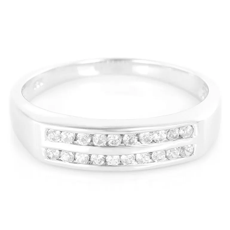 Entdecken Sie die Anziehungskraft unseres fein gearbeiteten Rings aus Sterlingsilber, der mit zwanzig strahlenden Zirkonen aus Kambodscha von insgesamt 0,291 Karat verziert ist. Jeder Stein wurde sorgfältig in eine runde, brillante Form geschliffen, um sein Funkeln zu maximieren, das sich mit dem Glanz des 925er Sterlingsilbers verbindet. Durch sein minimalistisches Design ist dieser Ring vielseitig einsetzbar. Er eignet sich perfekt für einen Hauch von Eleganz im Alltag oder als raffinierter Akzent für besondere Anlässe. Seine zeitlose Anziehungskraft sorgt dafür, dass er zu einem geschätzten Stück in jeder Sammlung wird.