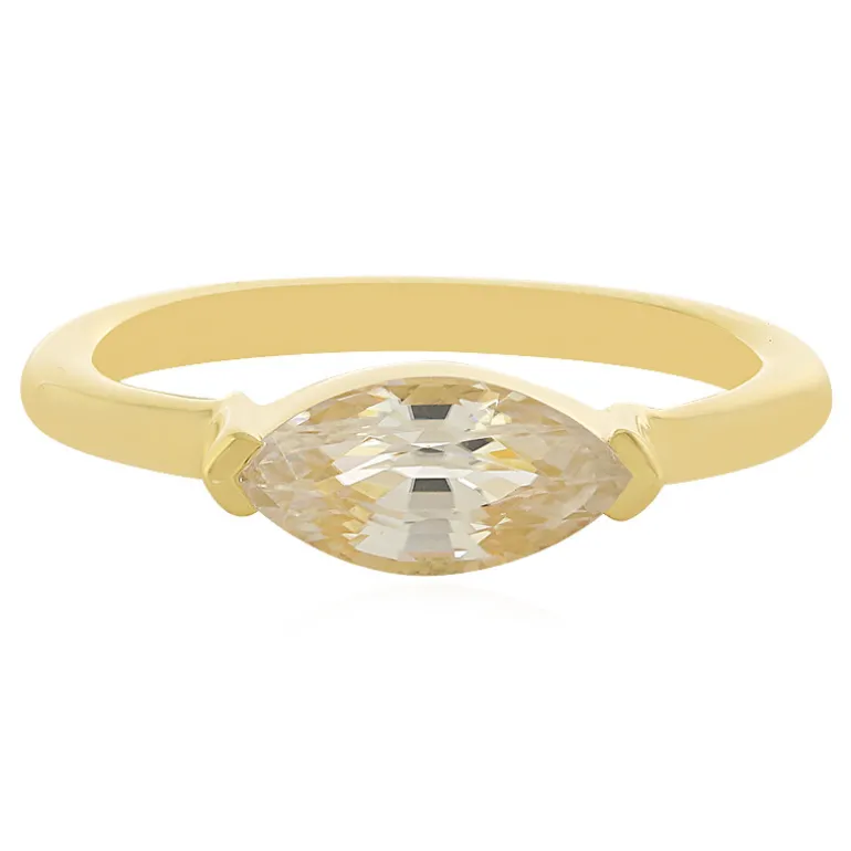 Entdecken Sie die Faszination dieses Rings aus vergoldetem 925er Sterlingsilber, der einen kambodschanischen Zirkon im Marquiseschliff von 1,47 Karat in einem champagnerfarbenen Ton präsentiert. Das schmale Band ergänzt die längliche Form des Edelsteins und macht ihn zu einer raffinierten Wahl für das tägliche Tragen oder für besondere Anlässe. Dieser Ring lässt sich sowohl mit Freizeit- als auch mit Abendgarderobe kombinieren und verleiht jedem Outfit einen Hauch von Glamour und Eleganz.