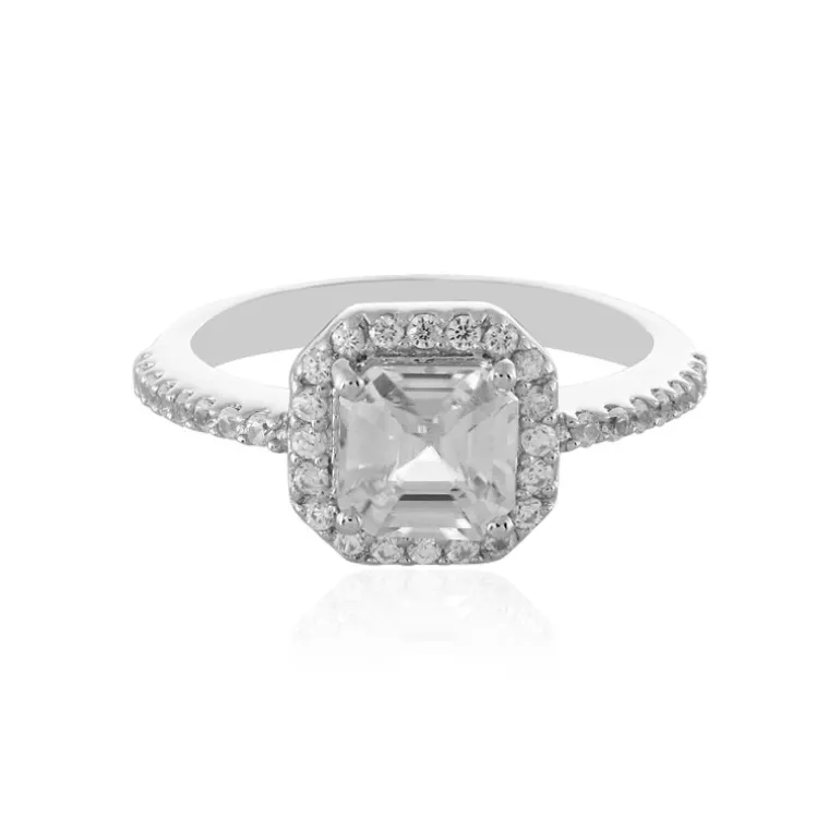 Entdecken Sie die fesselnde Anziehungskraft unseres kambodschanischen Zirkons im Oktagon-Aster-Schliff, der in einem platinierten Ring aus 925er Sterling Silber gefasst ist. Dieses Meisterwerk verfügt über einen zentralen Edelstein von 1,646ct, der elegant von einem Halo aus 36 funkelnden Zirkonen im Rundschliff von insgesamt 0,419ct eingerahmt wird. Mit seinem auffälligen Design von 23 x 20 mm ist dieser Ring perfekt, um jedem Ensemble einen Hauch von Raffinesse zu verleihen. Er ist ideal für besondere Anlässe oder als Geschenk. Seine zeitlose Eleganz und seine glänzende Oberfläche machen ihn zu einem unvergesslichen Schmuckstück.