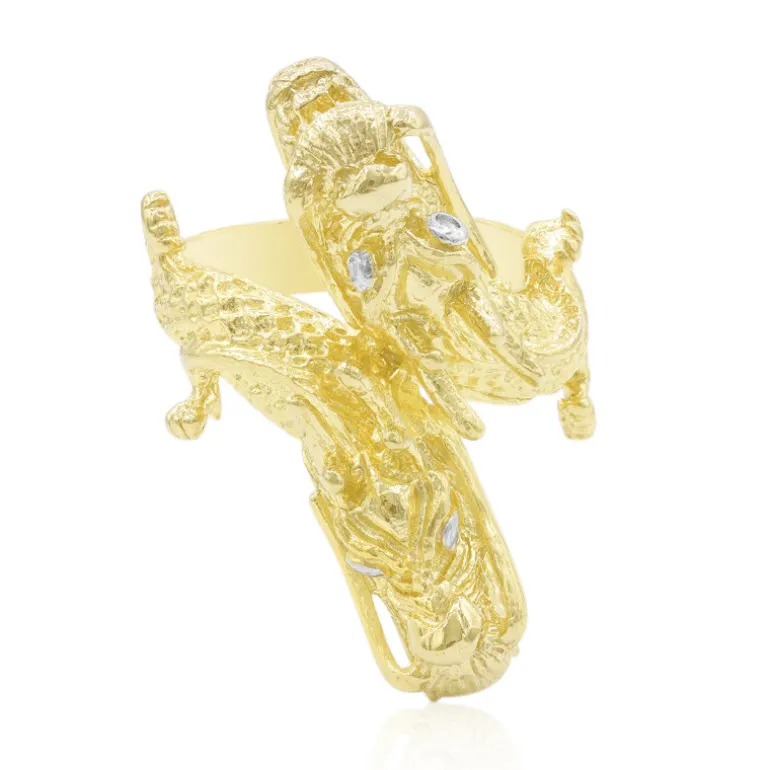 Entdecken Sie die Anziehungskraft unseres vergoldeten Rings aus Sterlingsilber, der mit 0,045 Karat glitzernden kambodschanischen Zirkonen besetzt ist. Dieses atemberaubende Stück, mit einem Gewicht von ca. 9,48 g, präsentiert sorgfältige Handwerkskunst mit einem runden Zirkon, der das Licht in einem Tanz der Brillanz einfängt. Das einzigartige Reptiliendesign verleiht Ihrer Sammlung einen Hauch von kühnem Stil und macht ihn zu einem auffälligen Schmuckstück, das sich perfekt für besondere Anlässe eignet oder Ihre Alltagskleidung auflockert. Kombinieren Sie ihn sowohl mit legerer als auch mit formeller Kleidung und sorgen Sie mit diesem bezaubernden Ring für Gesprächsstoff, wo immer Sie hingehen.