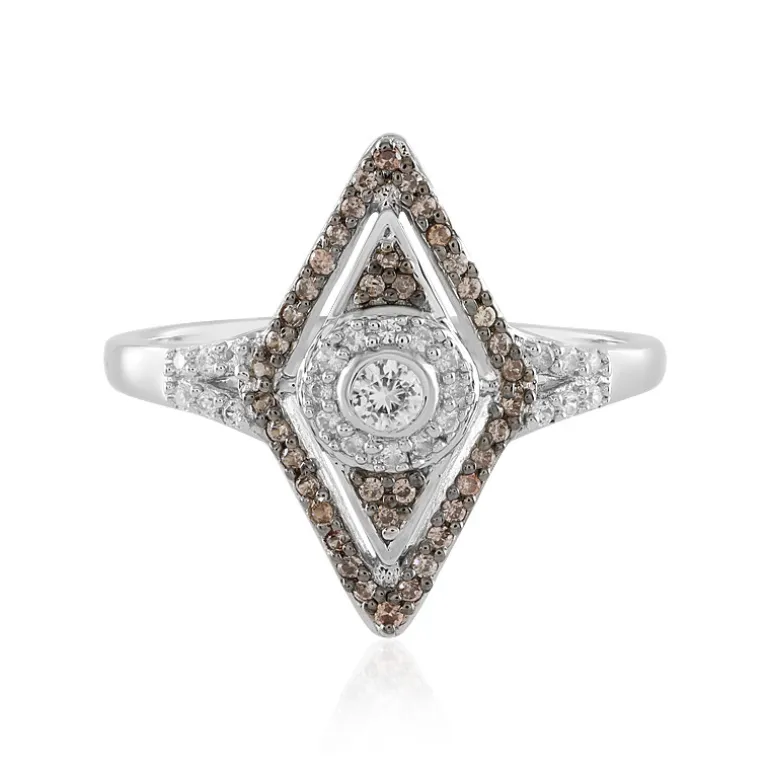 Dieser Ring aus Sterlingsilber, der eine Verschmelzung von Glanz und Geometrie darstellt, besticht durch eine faszinierende Ansammlung kambodschanischer Zirkonsteine von insgesamt 0,686 Karat. Der zentrale Stein wird von konzentrischen Mustern aus cognacfarbenen und klaren Zirkonen umrahmt, von denen jeder sorgfältig geschliffen wurde, um die ihm innewohnende Brillanz zu verstärken. Die Basis aus 925er Sterlingsilber wiegt etwa 3,21 Gramm und verspricht sowohl Haltbarkeit als auch Eleganz. Dieser Ring ist die perfekte Wahl, um jedem Ensemble einen Hauch von Raffinesse zu verleihen. Er ist ein kunstvolles Accessoire, das sich sowohl für legere als auch für formelle Anlässe eignet.