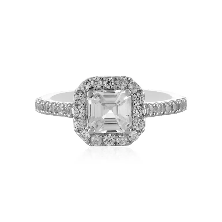 Entdecken Sie die Faszination dieses Rings aus platiniertem 925er Sterlingsilber, dessen Herzstück ein prächtiger kambodschanischer Zirkon mit 1,174 Karat im Oktagon-Aspekt-Schliff ist. Eingerahmt von einem zusätzlichen Halo aus 30 Zirkonen im Rundschliff mit einem Gesamtgewicht von 0,643 Karat, verkörpert dieses exquisite Stück zeitlose Eleganz. Dieser Ring ist perfekt geeignet, um sowohl am Tag als auch am Abend einen Hauch von Luxus zu verbreiten, und verspricht, eine wertvolle Ergänzung für jede Schmucksammlung zu sein. Sein raffiniertes Design macht ihn zu einem idealen Geschenk oder zu einem herrlichen Geschenk für Sie selbst.