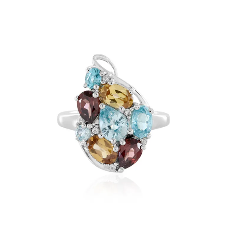 Entdecken Sie die Anziehungskraft dieses auffälligen Rings, der eine lebhafte Reihe kambodschanischer Zirkone in Champagner-, Rosa- und Azurfarben präsentiert. Das aus poliertem 925er Sterling Silber gefertigte Schmuckstück wiegt beachtliche 4,7 Karat und bietet eine eklektische Mischung aus Tropfen-, Oval- und Rundschliffen, die in einem einzigartigen Cluster angeordnet sind. Das perfekte Statement-Stück für besondere Anlässe passt sowohl zu eleganter Abendgarderobe als auch zu legerer Kleidung und verleiht Ihrem Look einen Hauch von Raffinesse und Farbe.