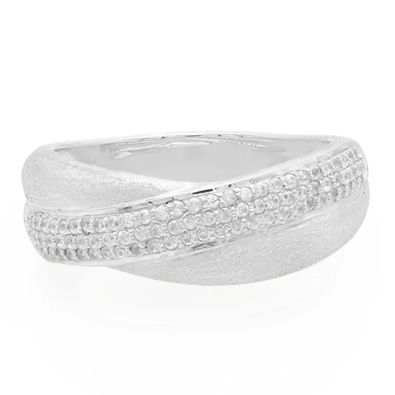 Genießen Sie die schlichte Eleganz dieses Rings aus Sterlingsilber, der 85 Zirkone im Brillantrundschliff aus Kambodscha mit insgesamt 0,632 Karat enthält. Die filigran platzierten Edelsteine funkeln auf der gebürsteten Oberfläche des Rings und verleihen ihm einen Hauch von Raffinesse. Mit einem Gewicht von ca. 4,05 Gramm ist dieses Schmuckstück ein Zeugnis für Handwerkskunst und Stil. Es eignet sich sowohl für formelle als auch für legere Anlässe und wird zu einem beliebten Accessoire für jede Gelegenheit.