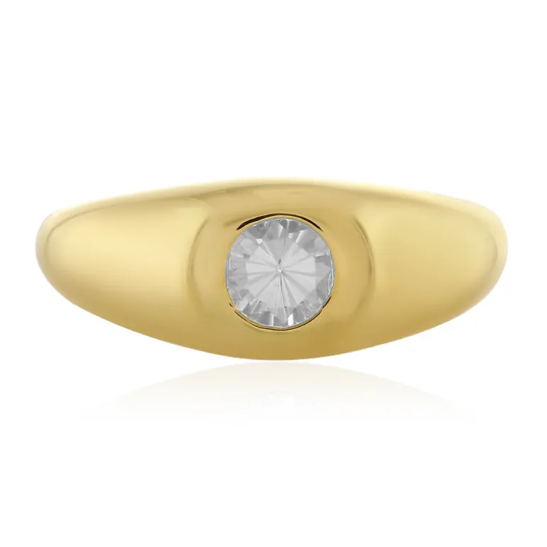 Entdecken Sie den minimalistischen Charme unseres vergoldeten Rings aus Sterlingsilber mit einem kambodschanischen Zirkon von 0,63 Karat im Rundschliff, der sich elegant in der Mitte befindet. Mit einem Gewicht von ca. 2,03 g präsentiert sich dieses Schmuckstück in einem raffinierten Goldton, der durch das Funkeln des Zirkons ergänzt wird. Es ist ideal, um der Tages- und Abendgarderobe einen Hauch von Eleganz zu verleihen und verspricht, eine vielseitige Ergänzung Ihrer Schmucksammlung zu sein.