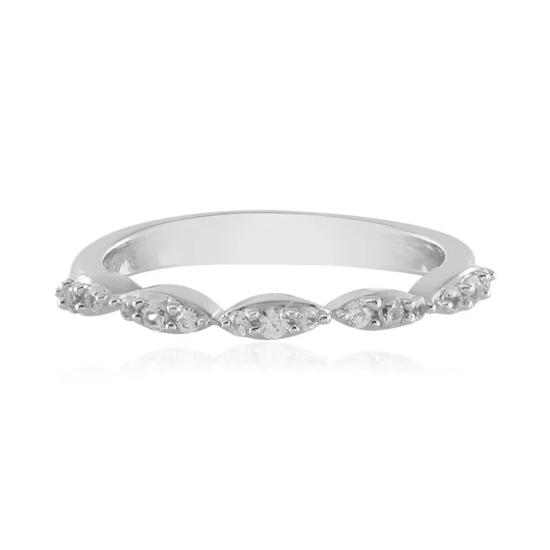 Entdecken Sie die Faszination dieses atemberaubenden Rings aus Sterlingsilber mit einem Ensemble aus sorgfältig geschliffenen Zirkon-Edelsteinen aus dem Herzen Kambodschas. Mit einem Gesamtkaratgewicht von 0,207 ct funkelt jeder Edelstein und schafft eine harmonische Symphonie des Lichts. Das schmale Band von 1,3 g verleiht dem Ring einen Hauch von schlichter Eleganz und macht ihn zu einer idealen Wahl für den Alltag oder besondere Anlässe. Kombinieren Sie diesen Ring mit einer frischen weißen Bluse oder einem Abendkleid für einen Hauch von Eleganz.