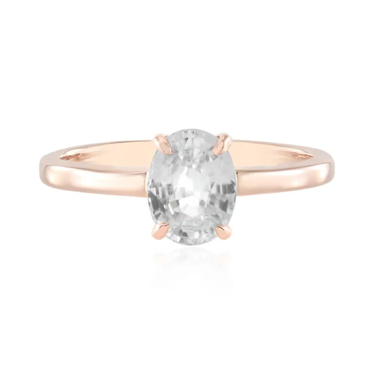 Entdecken Sie die Eleganz dieses exquisiten Rings mit einem kambodschanischen Zirkon im Ovalschliff von 1,68 Karat, gefasst in rosévergoldetem 925er Sterlingsilber. Seine raffinierte Brillanz macht ihn zu einer perfekten Wahl für den Tag und den Abend. Mit diesem raffinierten Accessoire, das bei jeder Bewegung Licht und Aufmerksamkeit auf sich zieht, können Sie Ihr Business-Outfit ergänzen oder ein schickes Abendensemble aufwerten.