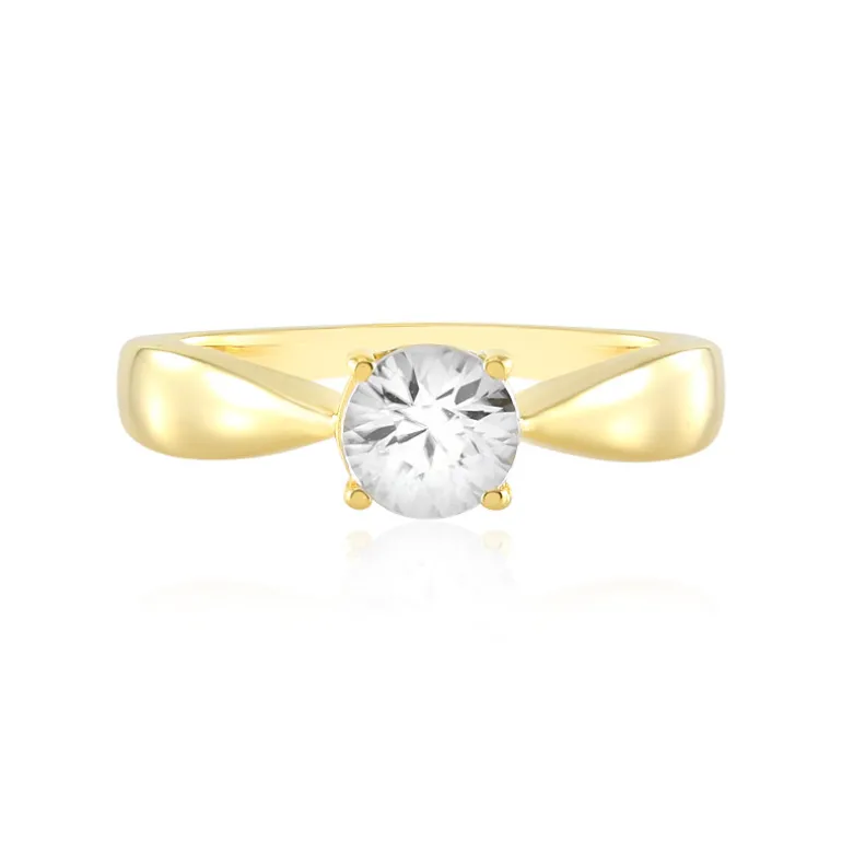Dieser exquisite Ring mit einem strahlenden kambodschanischen Zirkon, der fachmännisch in einem runden Brillant geschliffen ist, verleiht Eleganz. Der Stein mit einem Gewicht von 1,014 ct ist wunderschön in 925er Sterlingsilber mit einer luxuriösen Goldplattierung gefasst. Dieser Ring eignet sich sowohl für den Alltag als auch für besondere Anlässe und verleiht jedem Outfit einen Hauch von Glamour. Kombinieren Sie ihn mit formeller Abendgarderobe oder eleganten Tagesoutfits für einen wirklich raffinierten Look.