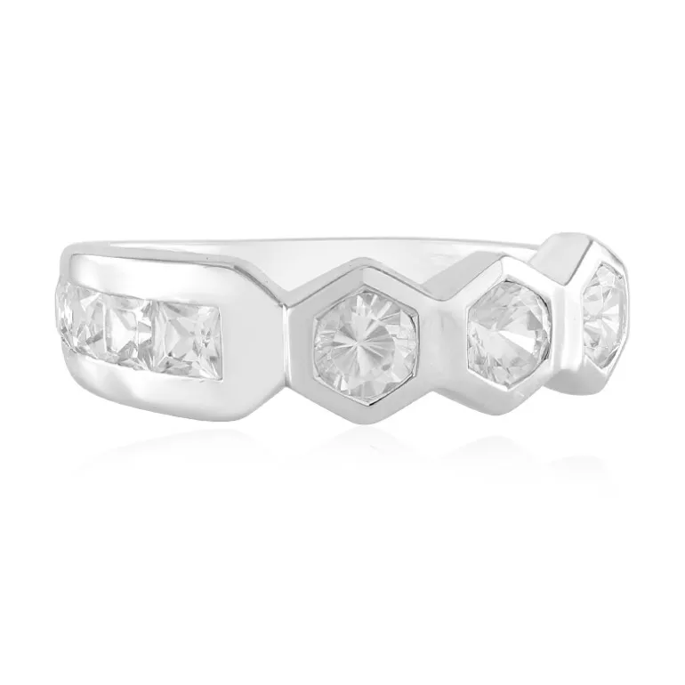 Entdecken Sie Eleganz mit diesem atemberaubenden Ring aus Sterlingsilber mit 7 kambodschanischen Zirkonen. Die einzigartige Mischung aus Prinzess- und Rundschliffen mit einem Gesamtgewicht von 2,16 ct fängt das Licht wunderschön ein. Dieser Ring eignet sich sowohl für legere als auch für formelle Anlässe und verleiht jedem Outfit einen Hauch von Raffinesse. Kombinieren Sie ihn mit Abendgarderobe für einen unvergesslichen Look.
