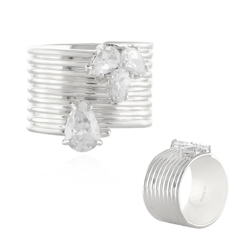 Entdecken Sie die schimmernde Schönheit unseres mehrreihigen Rings, der mit dem Funkeln kambodschanischer Zirkon-Tränensteine von insgesamt 3,31 Karat besetzt ist. Das aus hochwertigem 925er Sterlingsilber gefertigte Schmuckstück besticht durch sein kühnes Design mit mehrlagigen Bändern, die ein modernes Statement setzen. Die schimmernden Silberbänder kontrastieren wunderschön mit der Brillanz des Zirkons und lassen Ihre Hand bei jeder Bewegung erstrahlen. Der Ring ist ein vielseitiges Accessoire für Abendveranstaltungen oder den Alltag und eignet sich perfekt, um jedem Ensemble einen Hauch von Eleganz zu verleihen. Lassen Sie diesen exquisiten Ring Ihre erste Wahl für einen strahlenden und stilvollen Look sein.