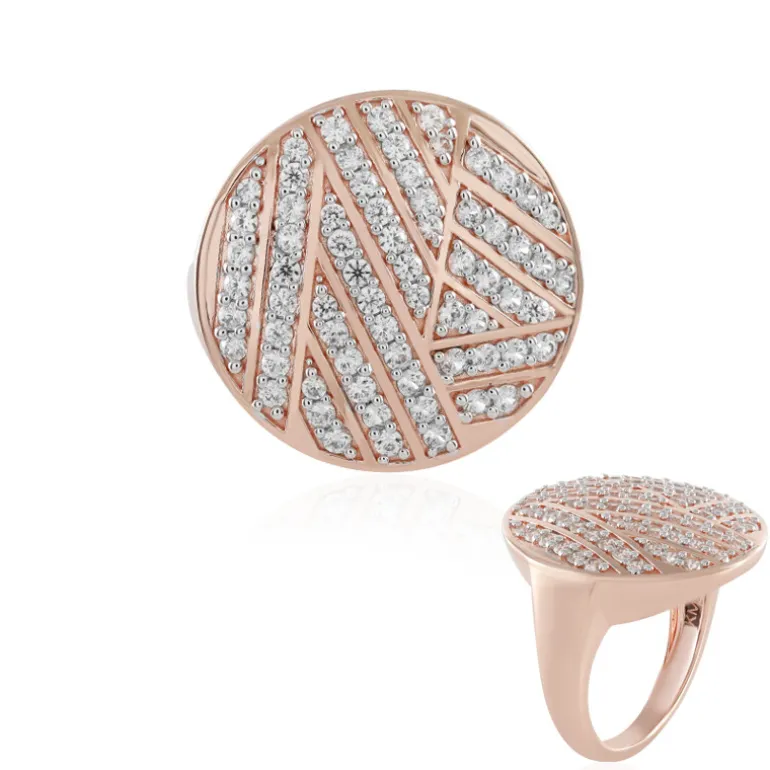 Entdecken Sie die Faszination des Cambodian Zircon Rose Gold Plated Silver Ring, ein schillerndes Accessoire von KM by Juwelo. Dieses elegante Schmuckstück besteht aus einer Symphonie von 68 strahlenden Zirkonsteinen, die akribisch angeordnet sind, um jeden Lichtstrahl einzufangen. Mit insgesamt 1,224 Karat glänzen diese rundgeschliffenen Edelsteine in makelloser Klarheit. Die Rosévergoldung des hochwertigen 925er Sterlingsilbers verleiht ihm einen warmen, romantischen Farbton, der zu jedem Hautton passt. Mit einer imposanten Größe von 22×21 mm ist der Ring ein gewagtes Statement, das zum Mittelpunkt Ihrer Garderobe wird, sei es für eine exquisite Abendveranstaltung oder für einen Hauch von Raffinesse in Ihrem Alltag.