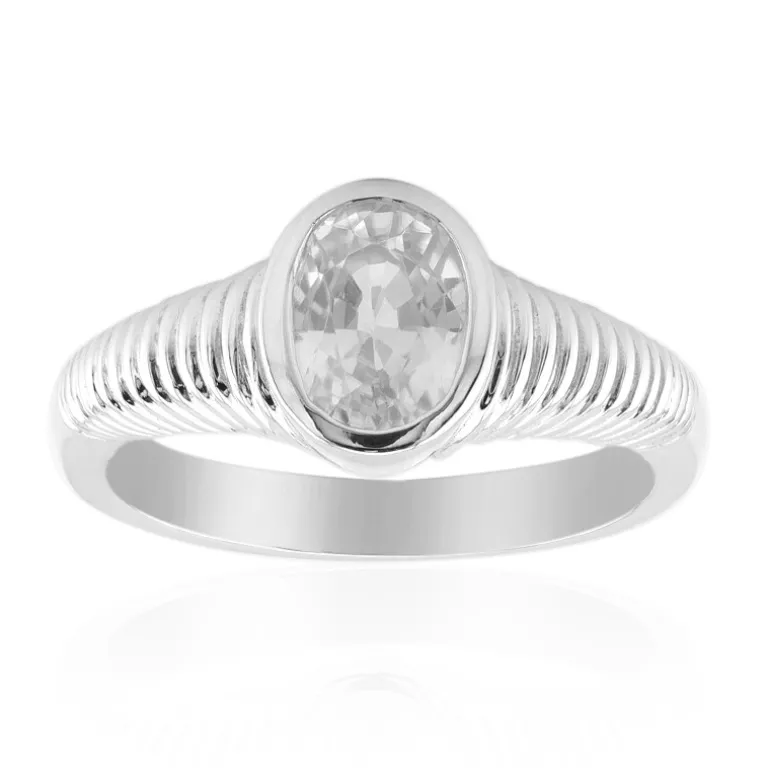 Dieser Ring stellt eine elegante Ergänzung Ihrer Accessoire-Kollektion dar. Er präsentiert einen fesselnden ovalen Zirkon von 1,06 Karat aus Tansania, der kunstvoll in hochglänzendes 925er Sterling Silber gefasst ist. Das glänzende Band strahlt eine moderne Ausstrahlung aus, mit zarten Rillen, die Textur und Tiefe verleihen. Der vielseitige Stil dieses Schmuckstücks ist perfekt, um den Alltag zu verschönern oder Abendgarderobe einen Hauch von Raffinesse zu verleihen, und macht es zu einem beliebten Schmuckstück.