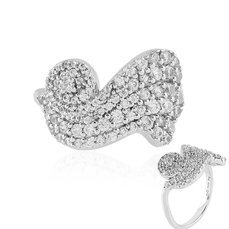 Erleben Sie die schimmernde Anziehungskraft dieses aufwendig verzierten Rings aus Sterlingsilber, der mit einer Platinbeschichtung für ein außergewöhnliches Finish versehen ist. Eine Konstellation von 89 kambodschanischen Zirkonen im Rundschliff mit insgesamt 1,483 Karat ziert das Band und bildet ein schillerndes herzförmiges Herzstück. Dieser exquisit gearbeitete Ring fängt das Licht bei jeder Bewegung ein und ist ein atemberaubendes Schmuckstück für besondere Anlässe oder einen Hauch von Funkeln in Ihrer Alltagskleidung. Seine großzügigen Abmessungen machen ihn zum Herzstück jeder Schmucksammlung und zu einem wertvollen Erbstück.