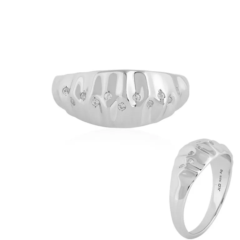 Dieser raffinierte Ring ist aus hochwertigem 925er Sterlingsilber gefertigt und mit einer Platinplattierung veredelt. Er enthält 11 schillernde Zirkone im Rundschliff mit insgesamt 0,102 Karat, die aus den üppigen Gebieten Kambodschas stammen. Der elegante Ring ist 22 x 21 mm groß und besticht durch sein einzigartiges, fließendes Design, das das Licht aus jedem Winkel einfängt. Dieses Schmuckstück eignet sich perfekt, um sowohl lässigen als auch formellen Ensembles einen Hauch von Glanz zu verleihen und lädt zu Bewunderung und Komplimenten ein.